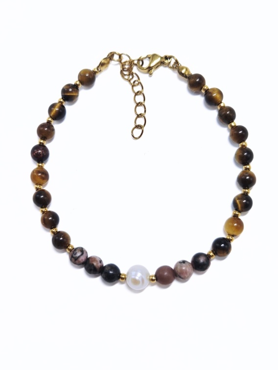 Kamienie: Perła słodkowodna, Tygrysie oko, Rodonit